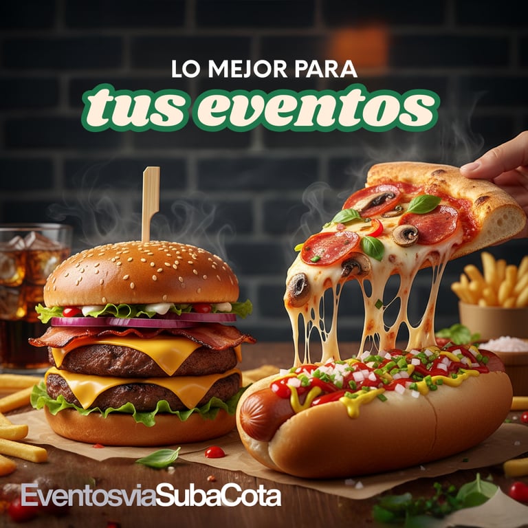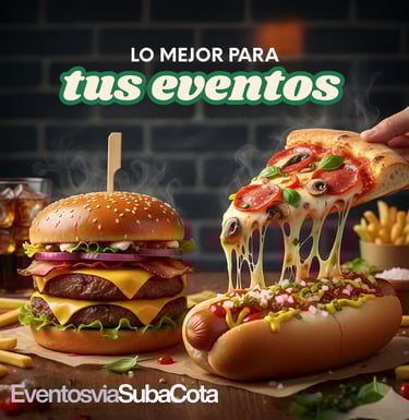 En Eventos Vía Suba Cota, sabemos que cada evento es una oportunidad para crear momentos felices. Y ¿qué mejor manera de encender la alegría y la diversión que con los sabores irresistibles que a todos nos encantan? Nuestro menú de Comida Rápida para Eventos está diseñado para ser la opción perfecta cuando buscas un toque casual, divertido y absolutamente delicioso.